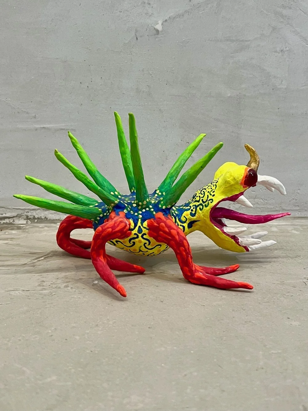 Fernando, nacido en la Ciudad de México en 1975, encontró su pasión por el arte desde temprana edad, destacándose en la creación de dragones. A pesar de tener Asperger, presentó su primera escultura en el Museo de la Ciudad de México en 1991. Con el tiempo, perfeccionó su talento bajo la guía del Maestro Enrique Yoli Prieto y la Maestra Lilianne Eyssautier. Fue en el taller de Susana Buyo donde descubrió la cartonería, técnica con la que ha creado impresionantes esculturas que reflejan su mundo interior. Su obra, centrada en el dragón como símbolo de fuerza y sabiduría, ha viajado por el mundo mostrando la riqueza del arte fantástico. Su ícónico dragón negro, “Mi yo interno”, encapsula su creatividad y pasión única.